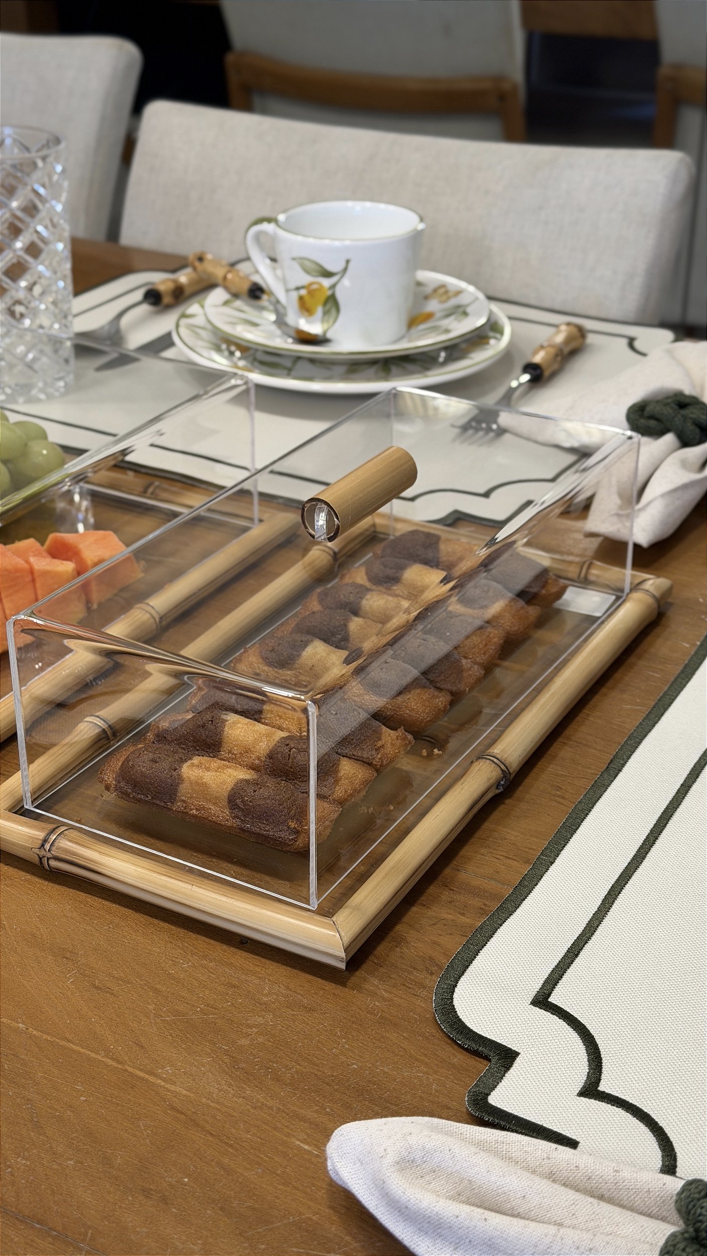 A tampa em acrílico completa o conjunto, proporcionando proteção aos alimentos preparados. Seu material transparente permite visualizar o conteúdo sem a necessidade de abrir a tampa, mantendo a frescura e os aromas preservados por mais tempo.