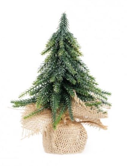 Mini Pinheiro Nevado com base em juta. Perfeito para decorar sua casa, levando a magia do Natal para dentro do seu lar.